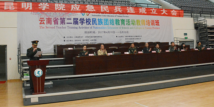 李斌部长宣读了官渡区人民政府关于批准在昆明学院成立民兵连的决定。