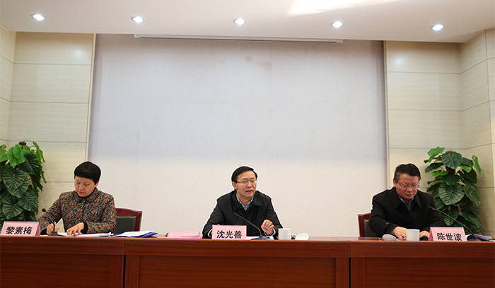 沈光善动员讲话,传达了省委委托高校工委开展检查考核工作的目的、意义和检查考核内容、程序、方法,并提出三点要求:一是统一思想,充分认识检查考核工作的重要意义。二是以检查考核为契机,推进领导班子和干部队伍建设,推进学校党风廉政建设和反腐败工作的任务落实。三是加强组织领导,确保检查考核工作取得实效。