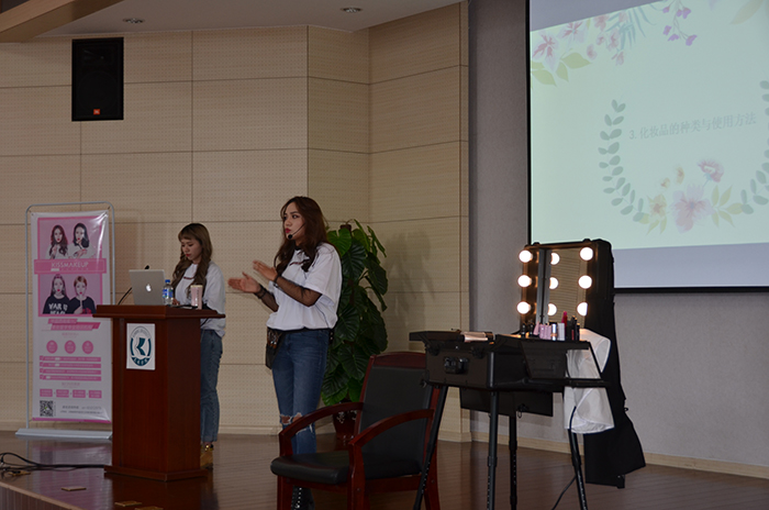 3月10日下午,“三八”节系列活动之美妆讲座在D区办公厅举办。Kissmakeup公司凯丽院长和小雪老师为我校女教职工讲解了基础护肤和彩妆步骤,并现场演示了日常妆的操作要点,以及发型的选搭。