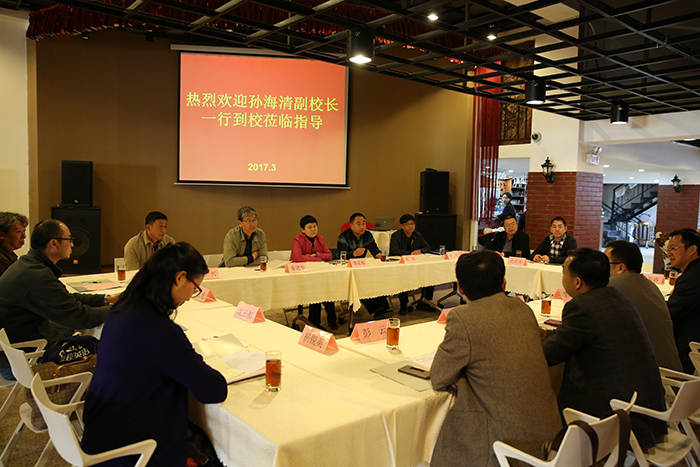 我校校长黎素梅,副校长郭华、董建华一同接待了来宾,对孙海清副校长一行来访表示欢迎,并介绍了学校校园规划建设、重点实验室建设、特色专业建设和人才培养等基本情况。