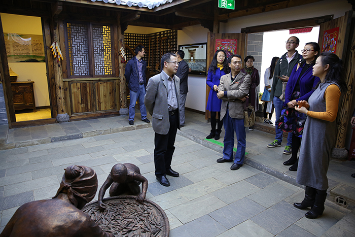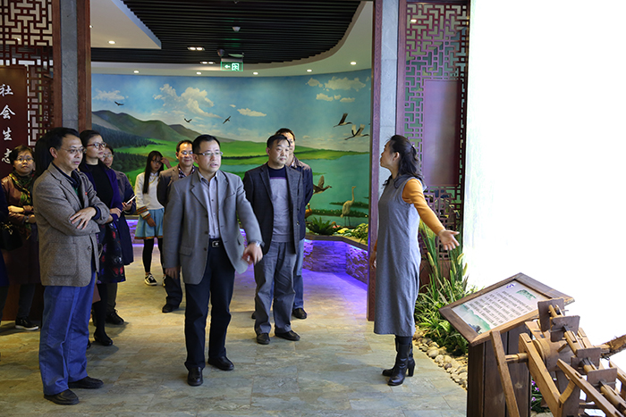 交流座谈前,孙海清副校长一行深入我校滇池流域生态文化博物馆实地参观。“昆明学院滇池流域生态文化博物馆是以滇池流域作为博物馆建设的特定区域,以生态文化作为博物馆建设的特定主题,以展示滇池流域自然生态、社会生态、文化生态、产业生态、景观生态为主要内容。”来宾一边认真逐一观看馆置实物、图片、影像,一边仔细听取工作人员的讲解。来到影像展示厅,来宾驻足观看了滇池流域自然生态环境演变及人文社会历史变迁视频。大家一致认为,博物馆建设通过实物、图片、影像、数字等多种形式,展示了滇池流域自然生态环境演变及人文社会历史变迁,借得学习借鉴。