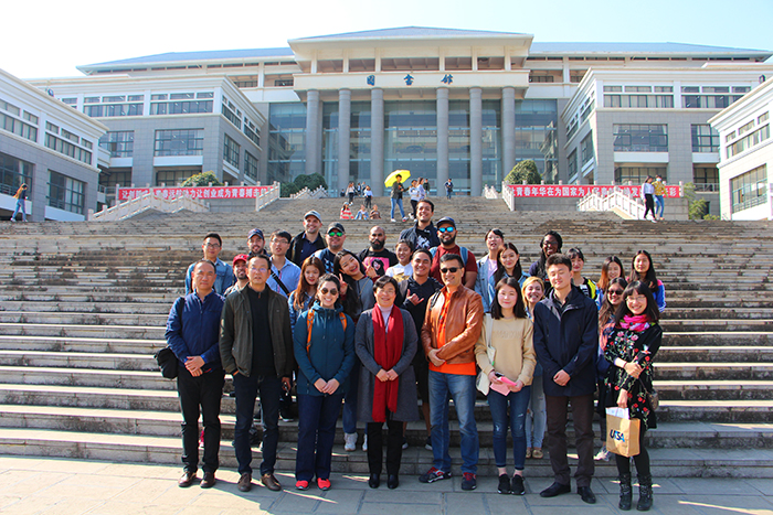 3月16日,美国德克萨斯大学圣安东尼奥分校孔子学院院长姚万祥教授率学生团一行13人到访昆明学院,对外经贸大学商务汉语基地办公室副主任房正陪同来访。我校副校长熊晶、国际交流合作处及旅游学院相关领导热忱接待了此次来访的美方外宾和中方人员。