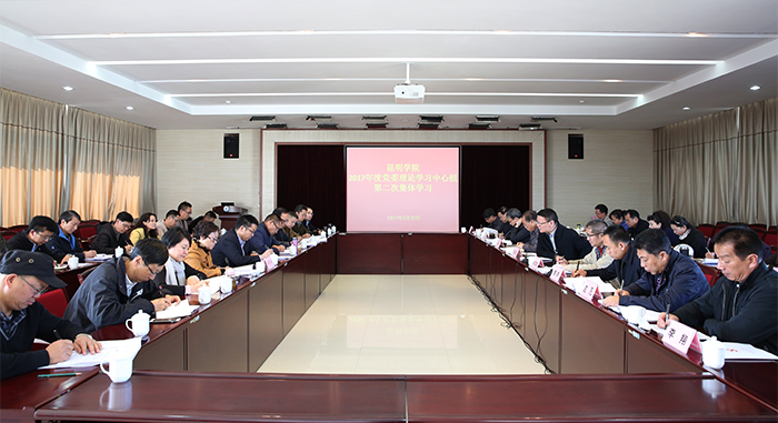 3月22日,昆明学院党委理论学习中心组举行2017年度第2次集体学习,深入学习贯彻全国两会精神和《中国共产党党委(党组)理论学习中心组学习规则》《普通高等学校学生党建工作标准》《领导干部报告个人有关事项规定》《领导干部个人有关事项报告查核结果处理办法》和钱恒义同志、周荣同志在省委巡视组巡视省教育厅党组动员会上讲话等系列文件。会议强调,领会精神,把握标准,守住底线,把规矩和纪律挺在前面,全面从严治党、从严治教,始终保持不放松、不懈怠的拼劲,推动学校各项工作稳步向前。 学校党委书记陈世波主持学习会并讲话,党委副书记张祖武领学系列重要规定和文件,其他党委委员、非中共党员校领导、副校级领导参加学习会。 陈世波指出,中国共产党历来高度重视学习,党委理论学习中心组开展学习是党内一项重要的学习制度,是领导班子内部就重大问题达成共识的有效途径,有助于推进决策的科学化民主化,有助于增强领导班子的凝聚力和战斗力。面对新的形势和任务,我们要不忘初心、继续前进,重要的是抓好领导干部这个‘关键少数’,加强和改进党委中心组学习。近日,中央制定了《中国共产党党委(党组)理论学习中心组学习规则》,省委出台了《党委(党组)理论学习中心组学习实施办法》,进一步规范了学习、明确了要求,请大家引起重视,认真学习、严格落实。大家要认真对待每一次学习,积极参会,会前要认真准备,会间专心学习,通过学习着实促进领导班子思想政治建设,不断提高领导干部素质。 陈世波书记强调,全体干部要高度重视,切实提高认识,加强学习,把规矩和纪律始终挺在前面。我们党有很多规定、严的纪律,我们要认真学习,准确把握要求,一以贯之。学习首先要搞懂规矩是什么,现在党内出现一些不容忽视的问题就是因为没有把规矩搞清楚,自己重视不够特别是思想上重视不够,最后由于某些事情被问责,首先要归结为自己平时学习不够、学不深、学不透,学习没有内化于心、外化于行。昆明学院全体干部前一段做的比较好,大家讲学习、守规矩,组织上对大家要求严一点是对大家的关心爱护,这结果对大家是很好的,但面对新要求新任务,还要持续地经常地有人讲一讲、说一说、提提醒。希望大家在保持良好成绩的基础上,进一步加强学习,提高学习境界,在学校“转型发展、内涵提升、重点突破”的发展过程中认认真真的把这个事情做好,高度重视巡视回头看工作,认认真真做好每一件事,增强学习、规矩、规定的重要性意识。
