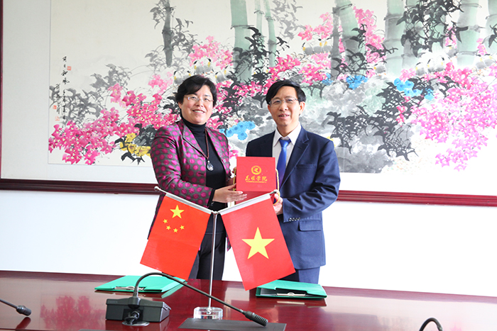 3月21日,越南老街省教育厅厅长阮英宁率领越南老街省综合技术职业技能常年教育培训中心校长邓德泰一行五人到我校交流访问。
