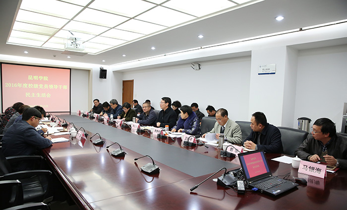 按照省委的统一部署和要求,2017年1月13日,昆明学院召开2016年度校级党员领导干部民主生活会。会议以深入学习领会党的十八届六中全会精神为主题,围绕“两学一做”学习教育要求,重点对照《关于新形势下党内生活的若干准则》、《中国共产党党内监督条例》,对照党中央和习近平总书记对云南工作的指示和要求,对标云南省委常委领导班子民主生活会,结合思想和学校党的建设、综合改革、综合性应用型高水平地方大学建设等工作实际,进行自我检查、党性分析,开展批评与自我批评。