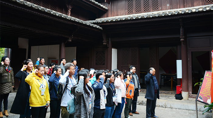 在中央红军总部旧址的大院内,由学校纪委书记王映平领誓,带领在场师生重温入党誓词:“我志愿加入中国共产党,拥护党的纲领,遵守党的章程,履行党员义务,执行党的决定,严守党的纪律……”入党誓词,是党员对党和人民作出的庄严承诺。誓词内容虽然简短,但内涵丰富;宣誓仪式虽然短暂,但一诺千金;每一名党员,都要始终牢记自己在党旗下的宣誓,自觉践行入党誓词的每一句话,在任何情况下都不忘初心,始终做到政治信仰不变、政治立场不移、政治方向不偏。通过重温入党誓词,在场的全体师生进一步坚定了热爱党、拥护党、永远跟党走的信念。