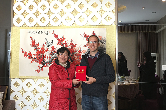 熊晶副校长和大家一起总结了一年来外教的管理和教学工作,对本学期工作考核中为“优秀”的两位外教(南非籍教师GRANT WARWICK HANDLEY先生、泰国籍教师Pinpinat Mootmun女士)进行了表彰。