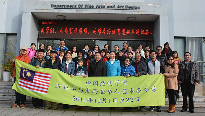 12月23日,由我校国际交流合作处主办、美术与艺术设计学院承办的“2016昆明学院马来西亚华人艺术冬令营”在美术楼一楼展厅举行了结业仪式暨学员学习成果展示。副校级领导李翔、美术与艺术设计学院书记罗进、副院长段智毅等相关院系部门的教师、志愿者和30名马来西亚学员参加了结业仪式和成果展示。