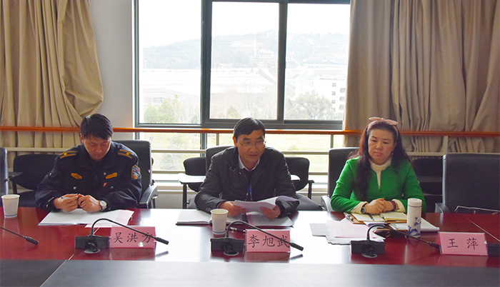 12月29日, 经开区安监局副局长李旭武率考核组一行3人对我校2016年度安全生产工作进行考核。学校副校长郭华及保卫处、后勤集团、基建处、资产与实验室管理处相关人员参加考核会。