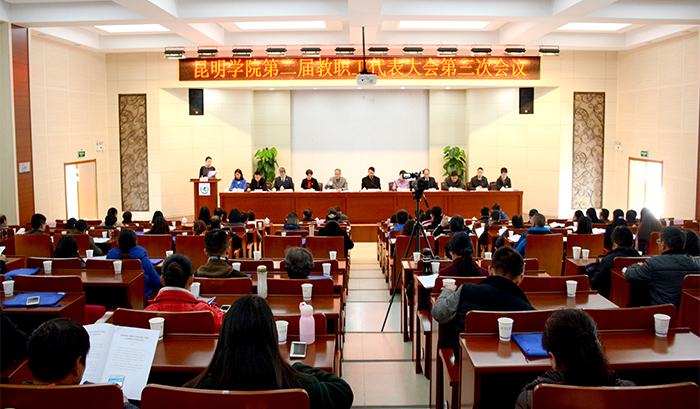 1月6日至7日,昆明学院第二届教职工代表大会第三次会议在办公楼D区三楼报告厅胜利召开。学校党委书记陈世波出席会议并作重要讲话。校长黎素梅作了《改革创新 真抓实干 为建设综合性应用型高水平地方大学而努力奋斗》的学校年度工作报告。学校第二届教代会正式代表、列席代表160余人参加会议。