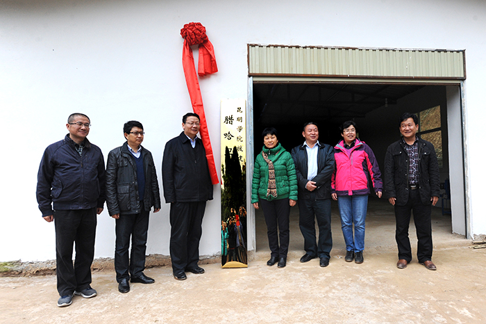 12月1日下午,陈世波书记一行经过7个多小时的车程到达红河县垤玛乡腊哈村扶贫点。下车伊始,在红河县委副书记念华昆,县委常委、组织部长杨泽,县委常委、常务副县长杨世红以及乡党政领导班子的陪同下,陈世波书记等学校领导与县乡领导共同为我校援建的腊哈热波罗养殖场和腊哈竹筷加工厂挂牌。
