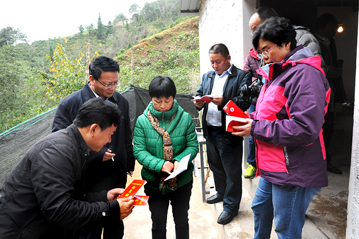 陈世波书记在听取情况汇报后讲话。他说,今天再次来到垤玛乡腊哈村,现场看到学校援建项目进展顺利,心里感到由衷的高兴。目前,学校援建的蛋鸡养殖场、竹筷加工厂已初见成效,幼儿园项目已动工打地基,小学教学楼接近封顶,这些工作的顺利推进,得益于大家共同的努力。希望学校各部门和县、乡领导共同努力巩固前一阶段的工作成果,让每一位贫困村民从精准扶贫工作中实实在在得到实惠。陈书记强调,开展脱贫攻坚工作,全面建成小康社会,是党中央的要求,是全国人民的期盼,也是垤玛乡人民和昆明学院的共同愿望。刚刚闭幕的昆明学院第一次党代会,明确了今后一段时期学校的发展目标和任务,同时学校也在积极谋划精准脱贫工作,学校将进一步加强与县乡的沟通联系,加大精准扶贫力度,与县乡村三级党组织一道,坚决实现全面建成小康社会的目标。