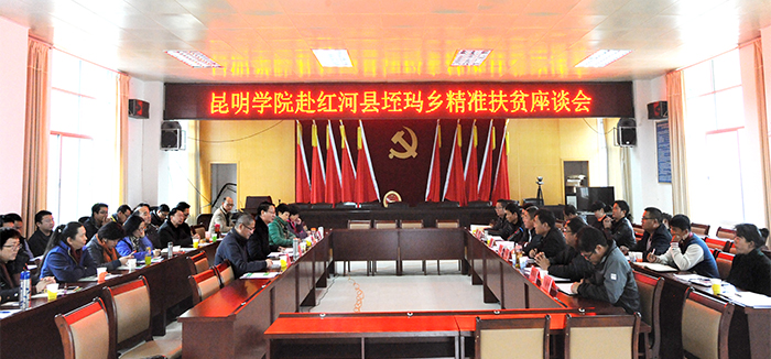 12月2日上午,昆明学院与红河县、垤玛乡举行脱贫攻坚工作座谈会,回顾2016年工作,谋划2017年工作。座谈会围绕学校援建腊哈村幼儿园、“党旗领航”电商扶贫项目、垤玛乡集镇规划文本智力成果移交等帮扶工作进行了磋商。座谈会由红河县委常委、组织部长杨泽主持。