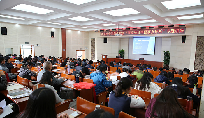 王明生教授强调,积累是基础、选题是核心、论证是关键。国家社科基金等科研项目的成功申报首先取决于申请者对课题的前期成果和积累,这些成果的积累要有稳定的研究领域和方向;选题要精心组织、全面动员,注重选题、严密论证,专家审核、指导修改,认真修改、完善论证,选题要做到时代性与学术前沿的有机结合。谈到科研项目申报的经验和体会,王明生教授结合南京大学申报国家级项目的成功经验,希望做到重点组织与自由申报相结合、瞄准国家目标与个人研究兴趣相结合、尊重科研规律与加强跟踪管理相结合、营造氛围与制度设计相结合;争取科研管理从“行政组织型”向“学术组织型”转变,由单兵作战向协同攻关、形成特色团队转变,由单纯追求数量向追求提高研究成果质量转变等。王明生教授还结合我校科研工作的实际提出了很多有价值的指导性、建设性意见和建议。整场报告内容翔实、观点新颖、方法实用、易学易用,让与会人员启迪思路、开阔眼界。王明生教授朴实精练、生动实用的精彩报告和倾囊相授、毫无保留的经验传授,体现了“大家”风范和务实的科研工作者的精神,赢得现场阵阵热烈掌声。