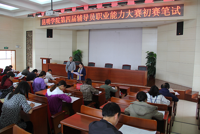 10月14日的初赛,以笔试的形式进行,笔试内容涉及基础知识测试、案例分析、公文写作三项,试题范围主要包括马克思主义理论、思想政治教育专业知识、党团和班级建设、学业指导、日常事务管理、网络思想政治教育、职业生涯规划与就业指导、心理健康教育、危机事件应对等相关工作领域的理论和知识,大学生思想政治教育相关法律法规、昆明学院学生手册、昆明学院学习管理规定等重要文件。主要考察辅导员对相关知识的掌握程度以及对信息的理解分析和解决问题能力,以及辅导员对与工作相关公文的格式、内容的把握及基本文字水平,全校80余名辅导员参加了笔试。