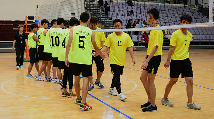 在男排的首场比赛中,我校落后四分,中场休息时结果教练认真指导,队员们重新调整状态,几个回合后追上比分,双方又经历了几次角逐,第一场比赛结束时,我校以25:17暂时领先。在队员们的积极配合下,第二场比赛中,我校以25:18继续领先。第三场比赛中,场上队员几次摔倒,但却依然顽强拼搏着,最终比分是以25:21,我校男排取得最后的胜利。