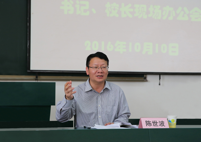 10月10日,学校在马克思主义学院召开思想政治理论课建设书记、校长现场办公会,学校党委书记陈世波、校长黎素梅、副校长郭华及党委办公室、校长办公室、党委宣传部、人事处、教务处、科研处、计财处、学生处、团委等相关职能部门领导亲临现场调研指导工作,针对马克思主义学院建设发展中存在的困难和问题,以及如何进一步加强和改进我校思想政治理论课建设,提出了对策、思路、希望和要求。会议由副校长郭华主持。