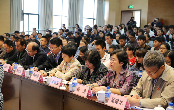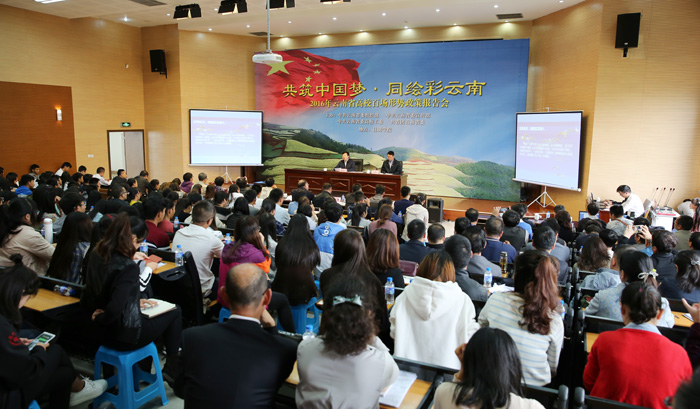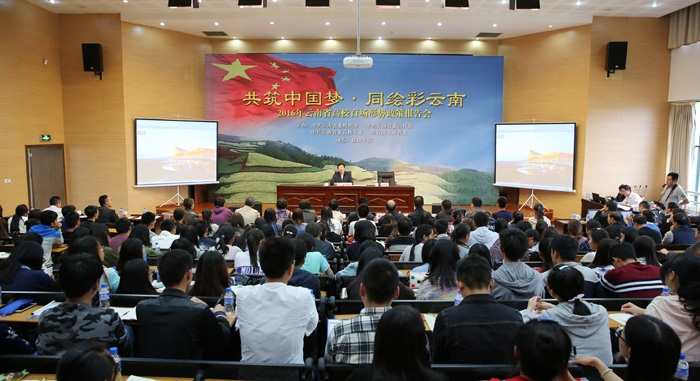 市委常委、市委宣传部部长金幼和,昆明学院校长黎素梅,党委副书记、纪委书记李媛芬,副校长李翔、熊晶、郭华、董建华出席形势政策报告会。昆明学院各职能部门、各院系党政主要领导,马克思主义学院教师和学生代表500余名师生现场聆听了报告会。