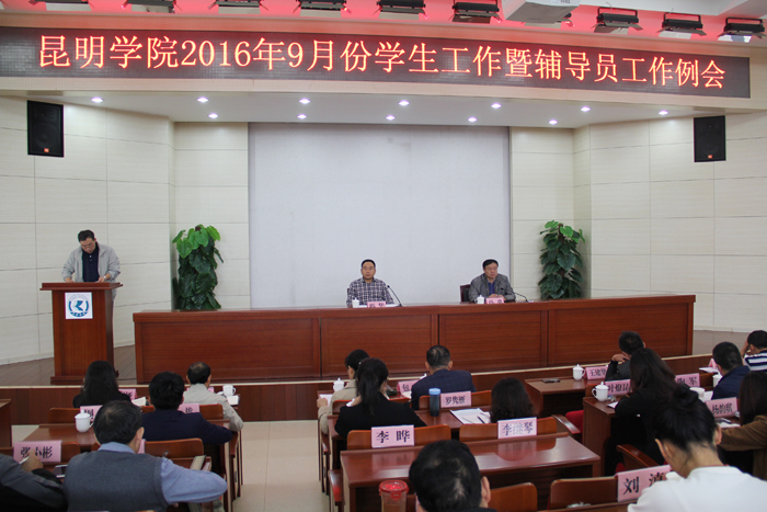 会议上,各相关职能部门通报了本学期的工作要点,结合部门职责,对近期学生工作进行了说明和安排。教务处对新生数据核对、老生报到注册、英语四六级考试、学生考研及各类大赛的组织工作进行了安排布置;校团委对大学生创新创业、青马工程培训、迎新招新等工作进行安排;招就处对2016届毕业生的就业创业工作进行了汇报,对2017届毕业生的就业工作及近期学生职业测评、就业意向调查等工作进行了安排;保卫处对开学以来校园治安情况进行了汇报,对综治维稳考核、反恐法及防骗专题教育、中秋国庆节学生的安全教育管理工作进行了安排;后勤集团对涉及学生的住宿、维修、作息,一卡通,校园创业项目的指导管理等工作进行了说明;学生处对开学报到、入学教育、学生军训、征兵工作进行了通报,对近期要开展的资助评优、优良学风班、文明宿舍、特色宿舍的评选验收、学平险投保、及中秋国庆节期间,学生的安全教育及信息统计备案等工作进行了安排布置;校医院专题对结核病防治工作进行了解读,并对昆明学院结核病防治方案进行了说明。