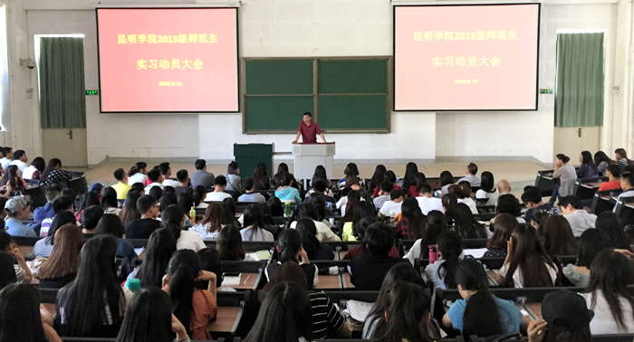 顶岗实习工作是“国培计划”县级教师培训团队置换脱产研修项目的重要内容之一。云南省2016年度“国培计划”聚焦乡村教师群体,项目实施工作以贯彻落实国家乡村教师支持计划和云南省实施办法为核心任务,以乡村教师为重点。置换脱产研修旨在“育种子”,打造项目县乡村教师培训团队。根据省教育厅的项目任务分配,昆明学院今年承担该项目4个项目县共315名教师的培训任务,相应选派315名高年级师范生将到楚雄市、广南县、芒市和安宁市进行持续时间为18周的实习及顶岗实践教学活动。参加顶岗实习的学生涵盖昆明学院所有涉及教师教育的13个院系,他们将和带队教师一起,于9月19日由学校统一包车分别送往实习的项目县(市)。