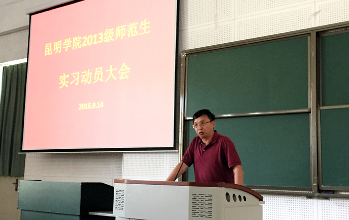马银海在动员讲话中重点强调了高校师范生教育实习的目的和意义。他说,教育实习是一个师范生从“准教师”成长为一位合格教师的必经之路。通过实习,能够帮助同学们巩固和运用所学的基础理论、专业知识和基本技能,了解基础教育,了解社会,获得教育教学工作的充分与全面锻炼,培养独立工作以及与他人合作的能力。希望每一位同学都把握好这次学习和实践的机会,努力提升自我。同时,每个在外实习的学生都从一定角度反映出学校的形象,同学们要通过自己的良好表现,让社会认可昆明学院。