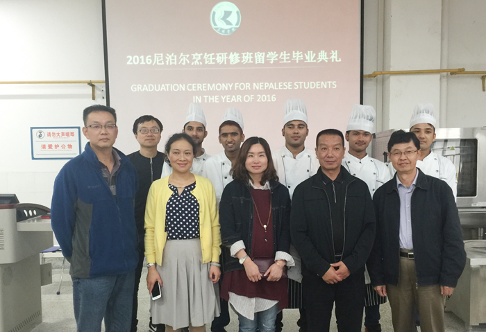 9月19日,昆明学院2016年尼泊尔烹饪短期培训班毕业典礼在旅游学院烹饪实训中心落下帷幕。昆明学院副校长李翔、国际交流处副处长陈静、旅游学院党政领导及相关老师出席了毕业典礼,毕业典礼由旅游学院院长田芙蓉主持。