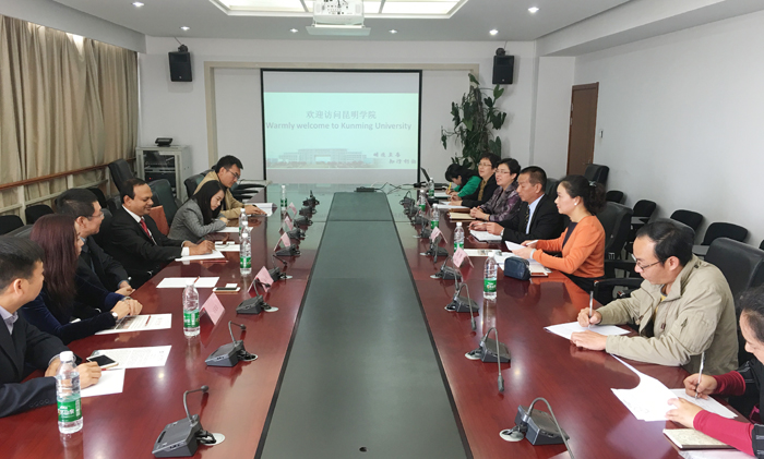 9月22日,孟加拉驻昆总领事馆总领事Mr. DAUD ALI、紫云青鸟云南文化创意博览园总裁周晓东一行五人来访。李翔副校长、熊晶副校长、国际处陈静副处长、美艺学院段智毅副院长等相关工作人员热忱接待了到访的外宾及客人。