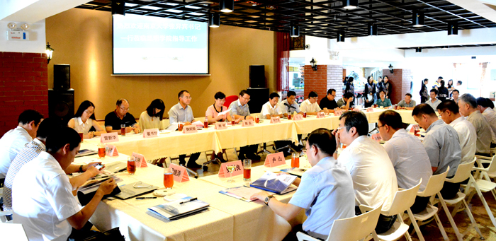 7月14日,南京大学党委书记张异宾、副校长薛海林率党委宣传部、党办、校办、校团委、化学化工学院、生命科学学院、医学院、商学院、经济学院等部门负责人到我校交流指导并洽谈工作。我校党委书记陈世波、校长何华,副校长熊晶与来宾在旅游学院酒水实验室举行座谈。