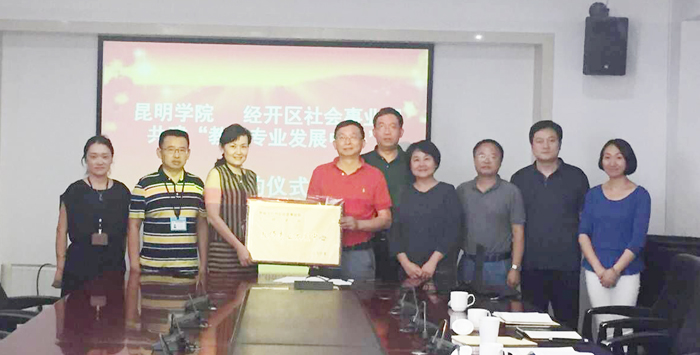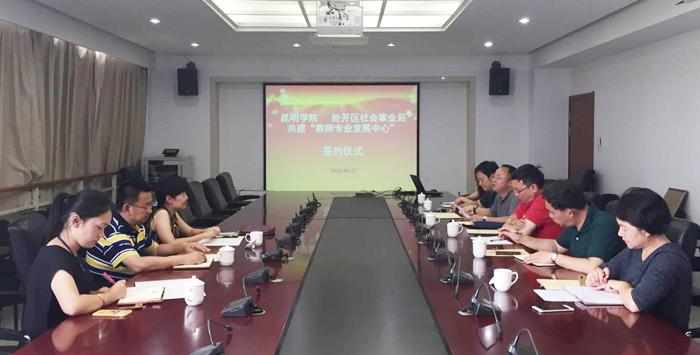 6月27日,昆明学院与经开区合作共建“教师专业发展中心”签字仪式在办公楼311会议室举行。经开区社会事业局局长马渝爽、副局长陆文龙一行三人,我校副校长马银海、教师教育学院院长王荔、教师教育学院副院长常进荣、教务处副处长吴晓柏等10余人参加了此次签字仪式。签字仪式由常进荣主持。