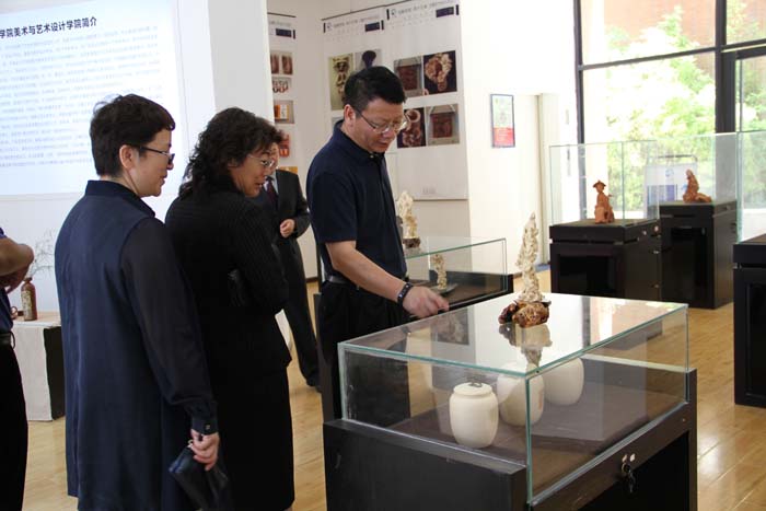 开幕式后,陈世波及我校其他领导陪同陶晴视察了昆明学院展馆,昆明学院美艺学院师生的系列创意作品,地方文化特色鲜明、视觉效果突出、实用性强,体现出教学科研与市场需求相结合的特点,受到陶晴和在场专家学者的充分肯定。