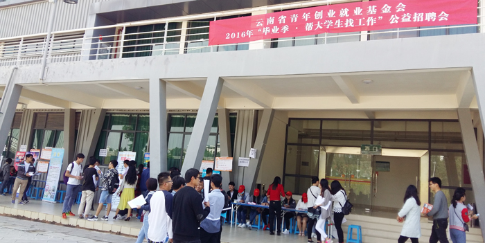 5月27日,由云南省青年创业就业基金会、昆明学院招生就业处、云南招聘网主办,昆明学院青年益工社承办的“2016毕业季•帮大学生找工作”大型公益招聘会在我校体育馆综合馆场外成功举办。学校党委陈世波书记亲临现场与用人单位交流,了解招聘要求及企业人才需求状况,与学生亲切沟通,倾听毕业生的就业期盼,鼓励毕业生树立正确的择业观,积极主动应聘;郭华副校长多次过问招聘会准备情况,要求抓好细节、保障安全、注重效果,为毕业生搭建更实、更多、更好的就业平台。学校招生就业处和各院系分管就业创业工作的领导、辅导员也到招聘会现场了解招聘情况。