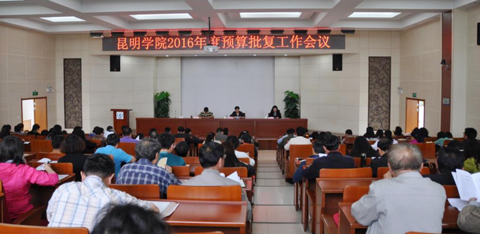 计划财务处处长博斌传达了《昆明学院关于下达2016年度经费支出预算的通知》(昆院财〔2016〕5号),分析了学校当前的财务形势,下达了学校各单位年度部门包干经费、校级专项经费预算批复。