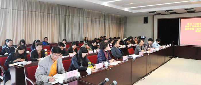 副校长郭华围绕学习“习近平总书记在哲学社会科学工作座谈会上的讲话”和“昆明科学发展智库”建设作了发言。
