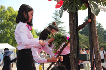 参加活动的有昆明世博园艺有限公司董事长彭晓斌、江南园林公司董事长计丕全、昆明学院组织部副部长樊传章、科研处副处长刘开庆、生命科学与技术系党总支书记翟书华、系副主任孔云虹及生科系200余名师生参加活动。
