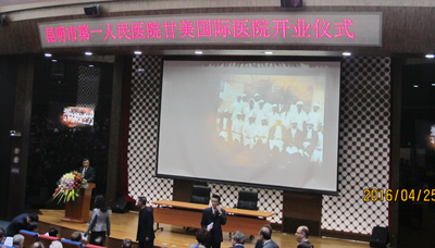 开业仪式由昆明市第一人民医院党委书记许勇刚主持,昆明市第一人民医院院长、昆明学院副院长李立,云南城投集团公司冯学兰副董事长,云南省卫计委党组书记王灿平,昆明市卫计委龚志龙主任等领导参加了会议。巴黎第五大学常务副校长斯特法罗.马胡诺先生,法国驻华大使馆科技参赞皮埃尔.勒蒙德先生,美国JCI首席顾问、HIMSS&执行董事,副总裁大中华区主任刘继兰教授分别致辞。