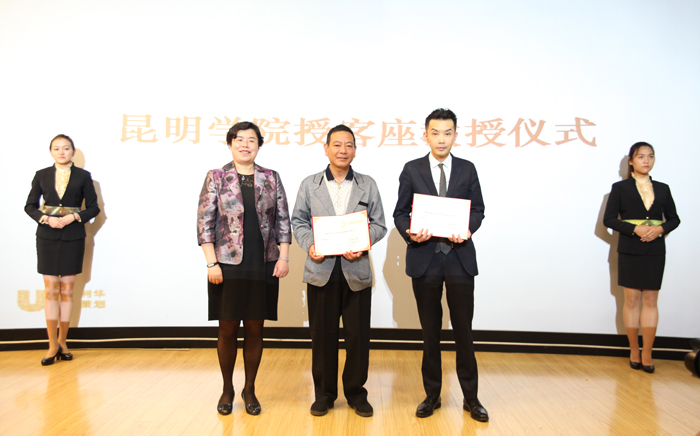 熊晶为昆明饭店国家级工作室首席专家鄢赪先生、百事特酒店中国烹饪大师罗荣先生颁发了昆明学院客座教授荣誉证书,此举进一步壮大我校烹饪师资队伍、提升了我校烹饪师资队伍实力。