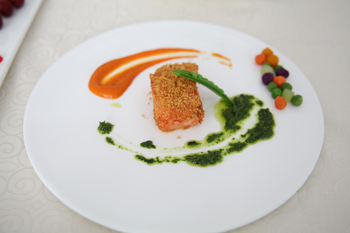 论坛进行的同时,联合利华杯厨艺竞赛在昆明学院旅游学院烹饪教研室举行,来自全国不同地区9支学校代表队参加竞赛。本次竞赛主要设定海鲜头菜、肉类主菜、甜品三个菜品。各参赛队将作品一一呈上时,到场嘉宾的目光被参赛作品深深吸引;选手们对作品创作理念、制作过程、作品特点进行简介。到精彩的点评环节,北京劲松职业高中烹饪系主任牛京刚大师从创作意境、理念给予了点评指导;鄢赪大师则从“味”的角度阐明了其重要性;张蔚波先生从细节着眼,强调选手需要从着装、配饰、装盘等细节方面提升自我,并结合国内外烹饪大赛行情给予了选手们引导,同时希望选手们需要用专业赢得尊重,提高行业的社会认同感。整个点评过程令所有参赛选手受益匪浅。经过综合评比,产生一等奖1名,二等奖2名,三等奖3名。昆明学院两个代表队荣获了一等奖与二等奖。熊晶、张蔚波、鄢赪为选手们颁发了一、二、三等奖。