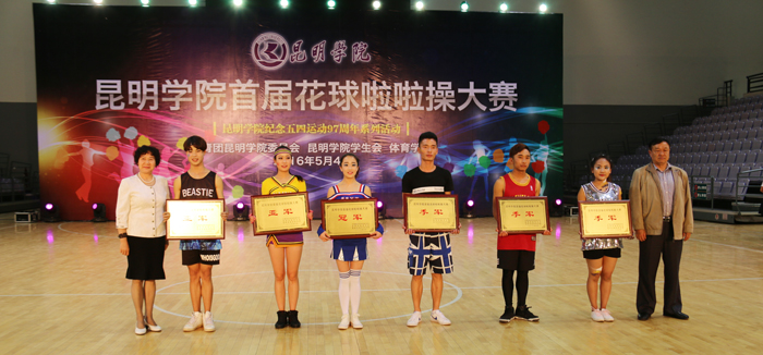 5月4日,校团委、校学生会和体育学院在体育综合馆联合举办了“昆明学院首届花球啦啦操大赛”。学校党委副书记孙勇、李媛芬出席比赛并与我校青年师生代表共度五四青年节。