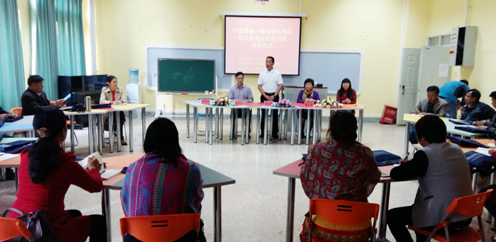 4月18日上午,中国瑞丽•缅甸缅北华文教育校长培训班在我校举行开班仪式。学校副校长李翔,学前教育与特殊教育学院党总支书记沈中灿、院长唐敏,云南省葫芦丝巴乌协会会长、云南艺术学院客座教授冯晓黎,云南省葫芦丝巴乌协会副秘书长、云南古歌葫芦丝国际推广中心主任杨莎莎和云南名典文化传播有限公司副总经理彭真,以及国际处相关工作人员参加开班仪式。