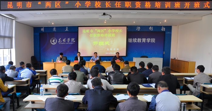 4月18日上午,倘甸产业园区、轿子山旅游开发区小学校长任职资格培训班在昆明学院昆师路校区开班。来自“两区”的53名小学校长参加本次岗位任职资格培训,继续教育学院主持工作副院长张培宏、“两区”社会事业局教育分局副局长吕忠彩出席开班式,并作动员讲话。这是“两区”的首期小学校长任职资格培训班,受“两区”社会事业局教育分局委托,由昆明学院继续教育学院承办。
