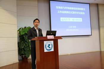 首先,何华代表学校致辞,对来宾表示欢迎和感谢。他介绍了学校建设、办学定位、人才培养、专业建设、科学研究、服务地方等情况,并认为院士工作站的建立将对进一步提升产学研合作共赢,有效整合学术资源,加快创新创业教育改革,对促进学校学科建设、人才培养、科学研究,推进昆明农业现代化、农业产业化发展具有重要的意义。学校将依托农学院、生物科学与技术系、化学科学与技术系以及两个省级工程中心的优势资源,积极开展生物炭领域院士工作站建设,为我省农业发展和环境保护提供智力支撑。他希望陈院士及各位专家领导一如既往对工作站建设发展给予指导、支持与鼓励,共同投入生物炭研究应用,共同推动高原特色农业的现代化发展。