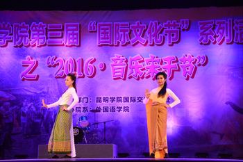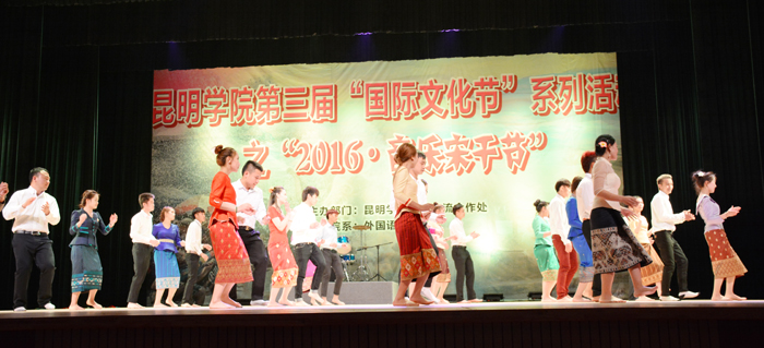 4月22日,昆明学院第三届“国际文化节”系列活动之“2016.音乐宋干节”在学生会堂隆重举行,本次活动由昆明学院国际交流合作处主办,昆明学院外国语学院承办。