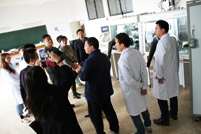 会后,熊晶陪同省科学技术院的领导和理事会成员参观了物科系有机光电子材料与器件重点实验室,并听取了实验室主任王海教授的汇报。