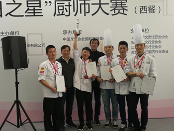 4月2日,2015 HOTELEX“明日之星”西餐总决赛在上海新展览中心隆重举行。我校旅游学院烹饪与营养教育专业2012级王灏然、朱伟、陈星、杨鹏及2014级夏振鹏同学组成的昆明学院代表队以西南赛区冠军的身份参加了本次全国总决赛。经过头菜、主菜和甜品三道菜的比拼。最终以总成绩第二名获得亚军,王灏然获得最佳技术奖。