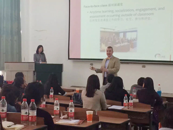 开幕式结束后,Gene Lamke教授即通过面向酒店管理专业学生的示范课堂教学,向老师们展示了如何使学生更加投入和专注的教学技巧和方法。在之后的议程中,万礼豪程项目团队就万礼豪程酒店情景英语使用技巧、酒店管理课程学习模式、教学大纲制定、专业课程内容建设、高科技在教学中的运用等对全体参会教师进行了5场专题培训。万礼豪程项目还为20位教师安排了资深讲师认证专场讲座。与会教师纷纷表示在这次研讨会上受益匪浅,将对自己今后在酒店管理专业的教学和人才培养工作方面有极大的帮助和提升。