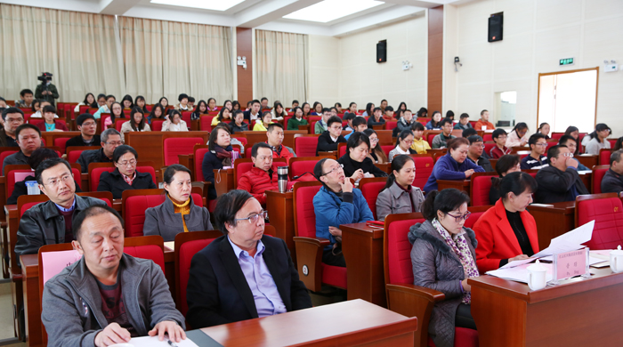 郭华宣读昆明学院2015年度“红云园丁奖”、“红河助学金”表彰决定。马宁等35名优秀教师和教学管理人员荣获昆明学院2015年度“红云园丁奖”,赵莲等105名品学兼优经济困难的同学荣获昆明学院2015年度“红河助学金”。
