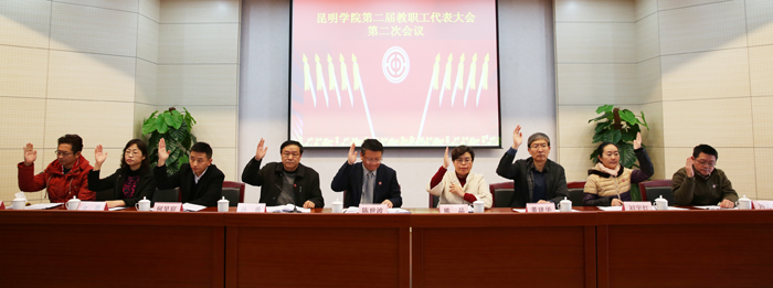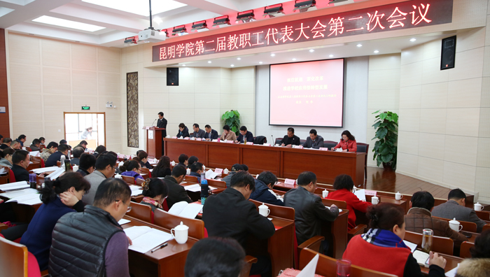 广集民智,同绘十三五美好蓝图;戮力同心,共创昆院新辉煌。1月8日至9日,昆明学院第二届教职工代表大会第二次会议在办公楼D区三楼报告厅成功召开。学校党委书记陈世波出席会议并作重要讲话,对我校总体工作及工会工作提出要求;校长何华向大会作行政工作报告,总结2015年工作、回顾“十二五”改革发展成就,分析学校面临的发展机遇与挑战,要求科学谋划“十三五”,阐述学校2016年工作思路、提出新任务新要求。来自全校各单位的教代会代表,带着全校教职员工的衷心祝愿和热切期盼,履职尽责,畅所欲言,献策出力,共商学校发展大计。