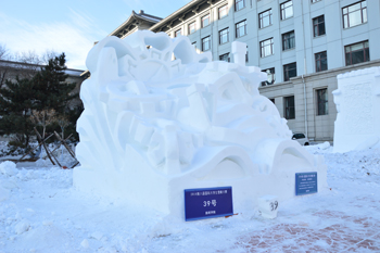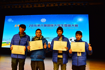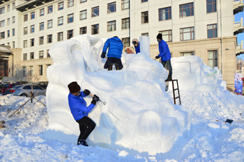 在1月4—7日举行的2016第八届国际大学生雪雕大赛中,由美术与艺术设计学院陈积党、陈浩、张紫煜、周龙强四位同学组成的昆明学院代表队凭借雪雕作品《舍吾能舍》获得三等奖。