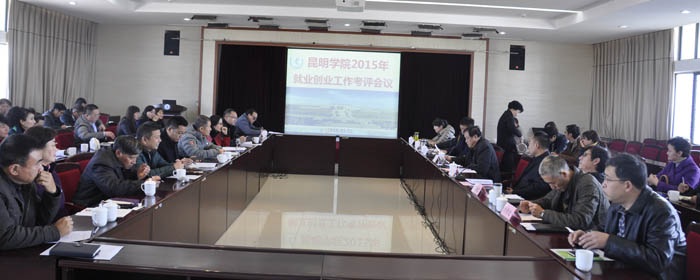 1月11日下午,我校在办公楼502会议室召开了昆明学院2015年度就业创业工作考评会。校党委副书记孙勇、副校长郭华及招就处、教务处、学生处、计财处、校团委的有关领导;我校18个教学院系的主要领导、相关辅导员出席了此次工作考评会。