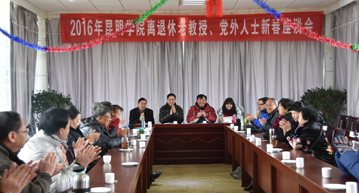 1月26日,一年一度的昆明学院老教授、党外人士座谈会暨新春联谊团拜会拉开了帷幕。来自离退休15个党支部的老教授、党外人士代表和离退休老教授协会负责人等30余人参加了座谈会;学校党委统战部部长沈中灿应邀出席了座谈会。